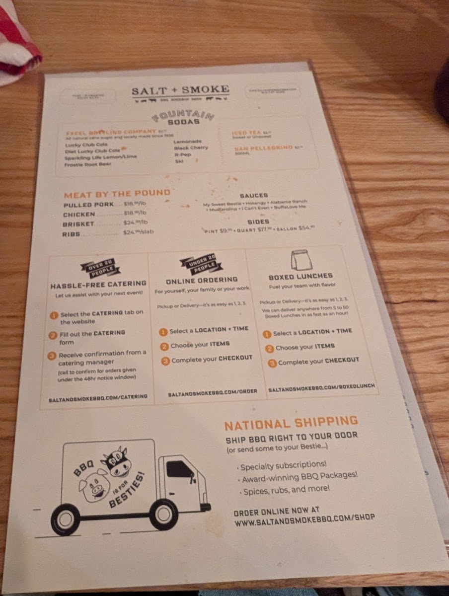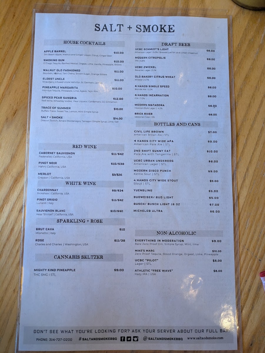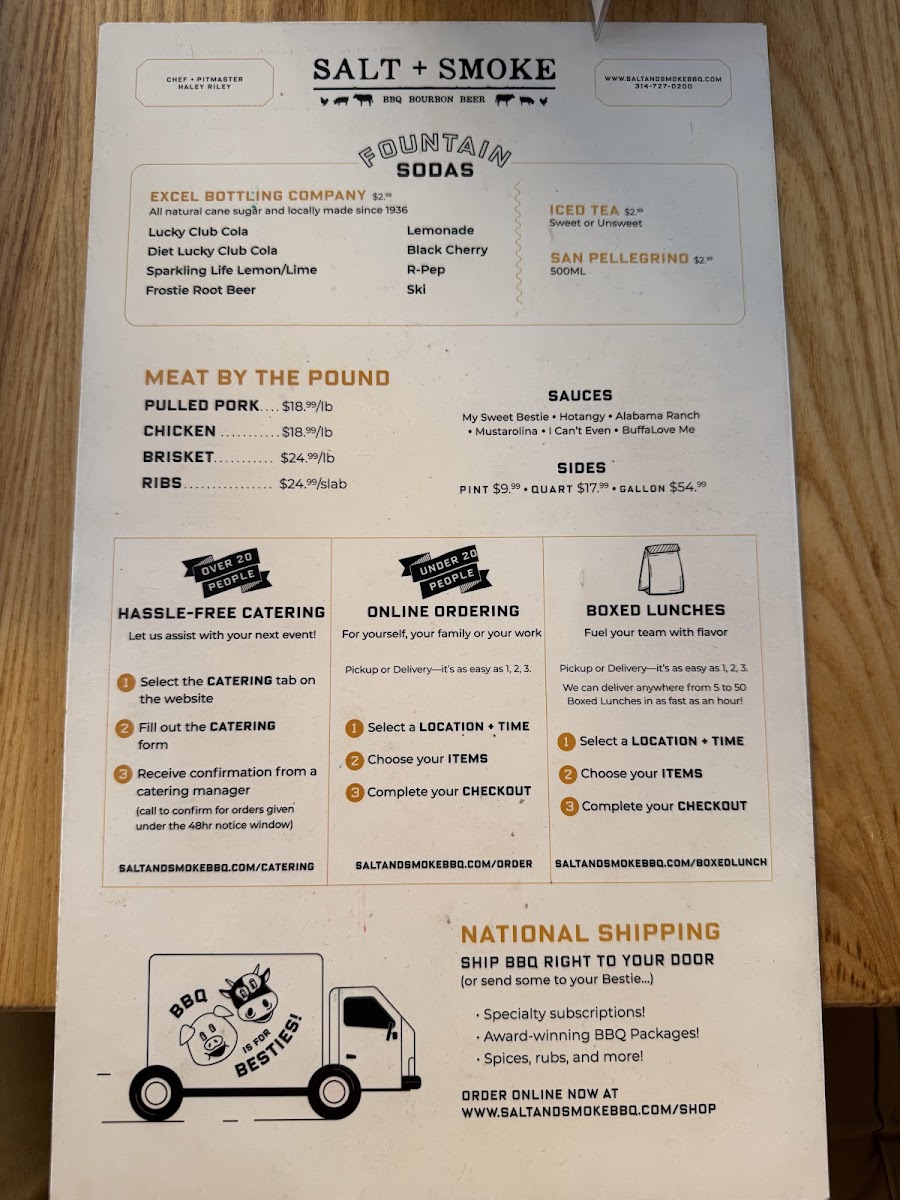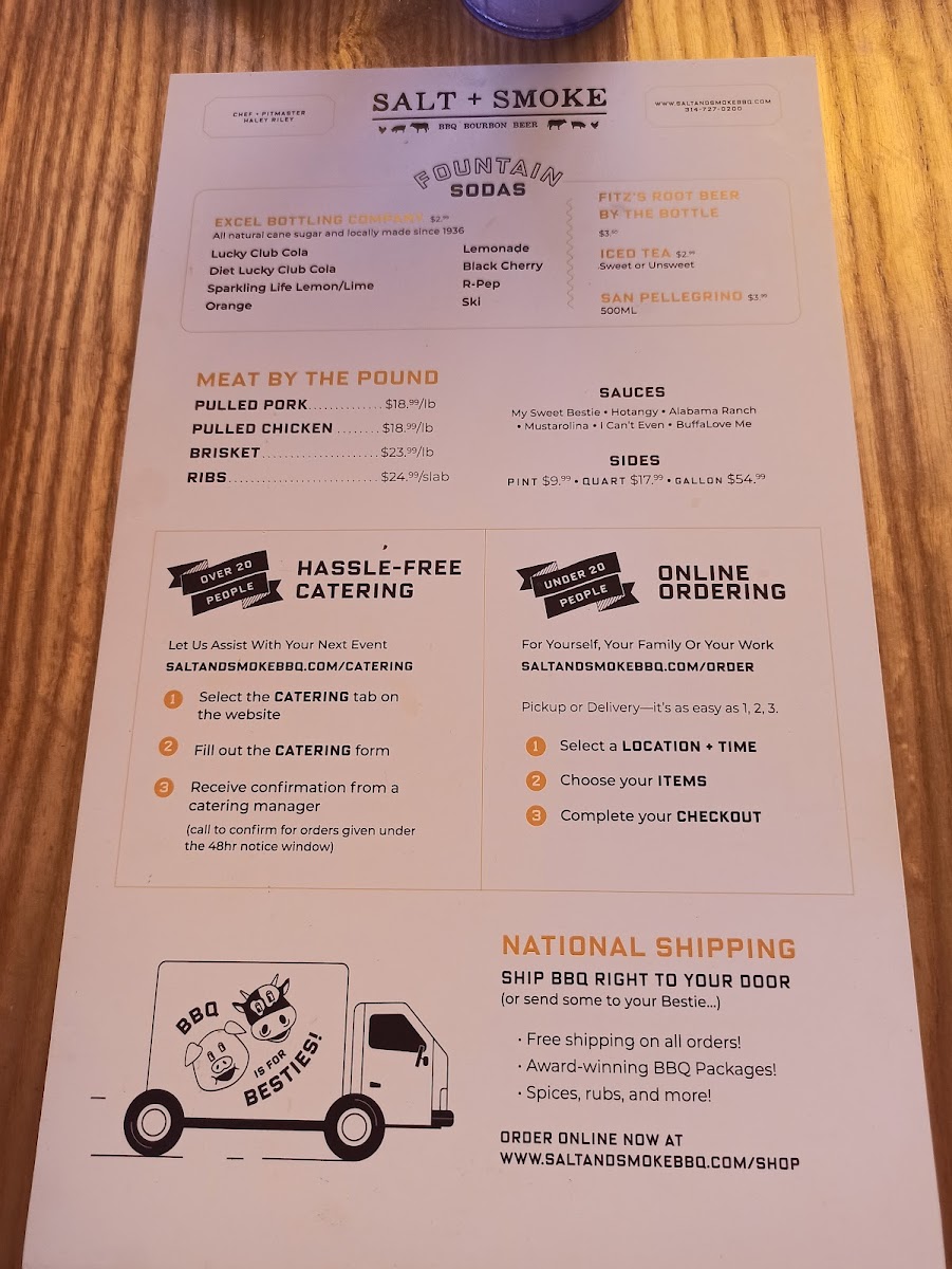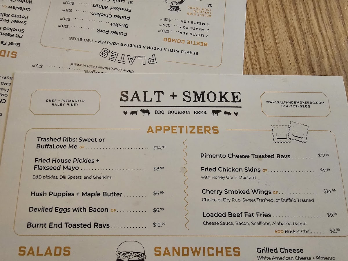 Nestled in University City, Salt Smoke is a barbecue haven that promises a feast for the senses. Their menu showcases a range of smoked meats, with customer favorites like tender ribs and juicy pulled chicken taking center stage. Each dish is crafted to perfection, ensuring generous portions and rich flavors that leave patrons wanting more.
